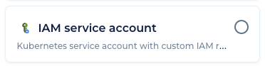 To provision a Service Account for AWS with IAM integration select “IAM Service Account”: